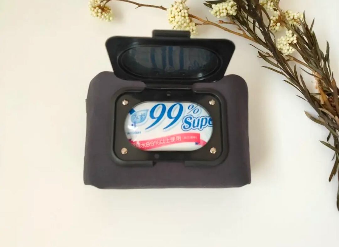 フタを閉じる際は、おしりふきを袋の中にしっかり入れ込んでからフタをしてください。生地におしりふきが長時間ついていると、カビの原因になることもございますのでご注意ください。